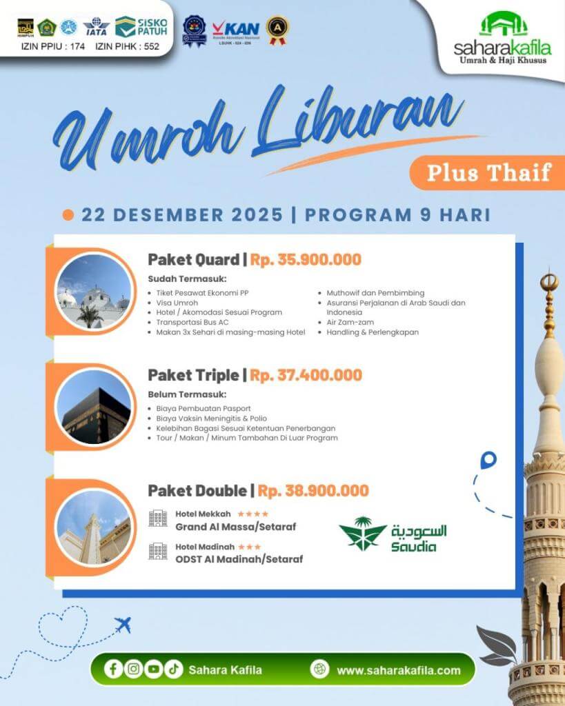 Promo paket umrah untuk jamaah diskon sampai dengan 25% selama periode berlangsung